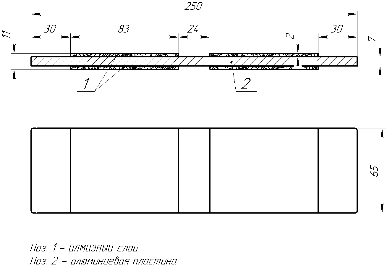 3. Алмазный двухсторонний брусок для снятия заусенцев размером 100х12х7х1х1 концентрация 25% 2,6 карата на связках В2-01/В1-10,