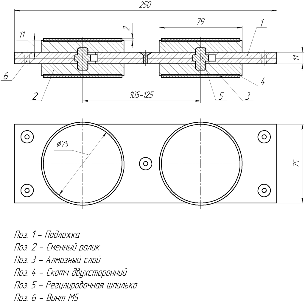 1. Планка для крепления поворотных алмазных кругов с возможностью изменения осевого расстояния между кругами;